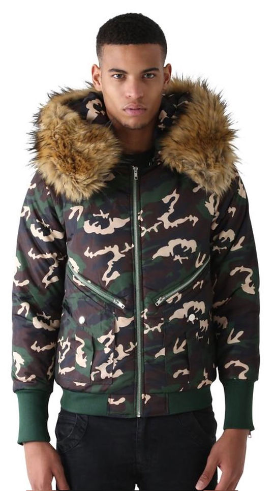Staying on trend with camouflage we introduce to you a hooded, fur trim jacket with a drawstring waist by Duckie Confetti. Duckie is known for his fun style which includes fur slides, pom pom hats and sequins jerseys. Beyonce, Fabolous, Young Thug, Cardi B and Khloe Kardashian have worn his designs. We really like the aesthetic of this winter jacket. The oversized hood, the fur trim and the length are sure to keep you warm but cool at the same time. The price of the jacket is $800 and can be purchased at theconfettiboutique.info