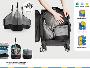 Save space when traveling and so much more with these handy dandy packing pods. Bag it! Add the strap attachment and use the Large and Medium Packing Pods as a handy, cross body day bag. Hang Anywhere! Use the clever loop and hook system to hang your pods and never unpack again. Pack It! Packing Pods are designed to fit well in both suitcases and backpacks so you can stop trying to fit a square cube in a round bag. Get a FREE strap worth $15!