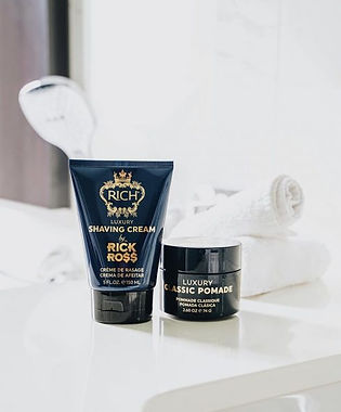 The nine-piece RICH by RICK ROSS line consists of a Luxury Beard Oil, Shampoo, Conditioner, Hair & Body Wash, Styling Gel, Shaving Cream, Aftershave Balm, Classic Pomade and Strong Styling Wax, so every guy can afford a taste of the #BossUp lifestyle. Every product in the RICH by Rick Ross collection is sulfate and paraben-free and contains The Boss Experience, a triple-threat elixir composed of luxurious, yet powerful ingredients: