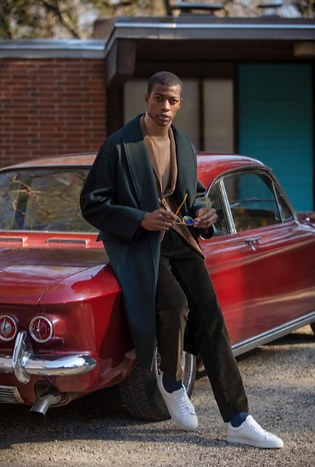 Maison Kitsune Wrap Coat, $1,075 | A.P.C. Pullover Dundee Turtleneck Sweater, $265 | Norse Projects Albin Corduroy $380 | Persol PO3152S Sunglasses, $250|