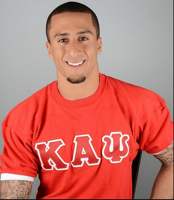NFL Quarterback Colin Kaepernick pledged at the Xi Phi Chapter at the University of Nevada, Reno.