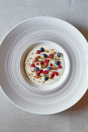 Chef: Daníel Jón Ómarsson Skyr, a yogurt-like dairy product, has been a staple in the Icelandic diet for over 1,000 years. While Icelanders categorize skyr as a cheese, it can be found in a variety of ways on menus throughout the country, from breakfast to this dessert served at Restaurant Ranga, Hotel Ranga’s restaurant with views of the East Ranga river, volcanoes, and sometimes, the Northern Lights. Ingredients for skyr: