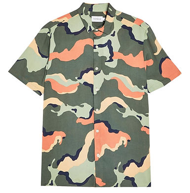Topman Slim Fit Camouflage Short Sleeve Button-Up Shirt