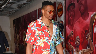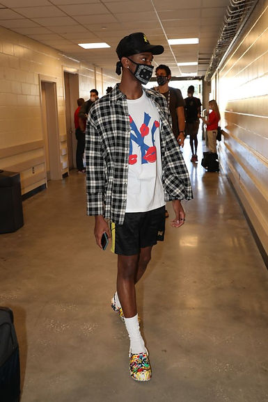 One of the main fashion trends spotted in the Bubble has been, surprise surprise, short-sets. In every color imaginable, athletes such as Lebron James have sported the classic summer combo, with James even going for a completely opened camp collar shirt for one look, which probably served just as well for ventilation as it did for style. Bold patterns and prints have been in full effect and executed in almost every iteration on most athletes. However, style stars like Russell Westbrook and Shai Gilgeous-Alexander have been taking their patterned outfits to the next level, often combining unconventional prints in the same look. Alexander’s plaid worker button-down shirt mixed with a red-lip embossed New York Yankees t-shirt, paired with tuxedo-striped shorts and paint-splattered, rainbow-colored croc shoes was one that definitely caught attention.