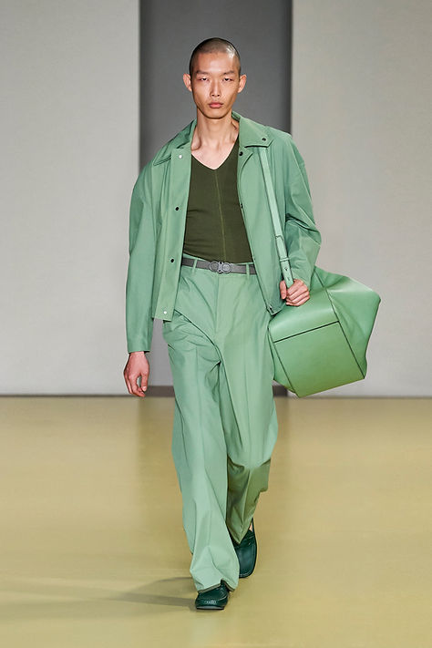I feel like we talk about this every season, but monochromatic looks show no sign of going out of style any time soon and continue to be a chic, go-to palette for menswear designers. Aside from pinks, many monochromatic looks came in the form of whites and creams, as well as various shades of blue. The key to making this trend more interesting is to play with different textures. as well as proportions (as discussed above), throughout the outfit.