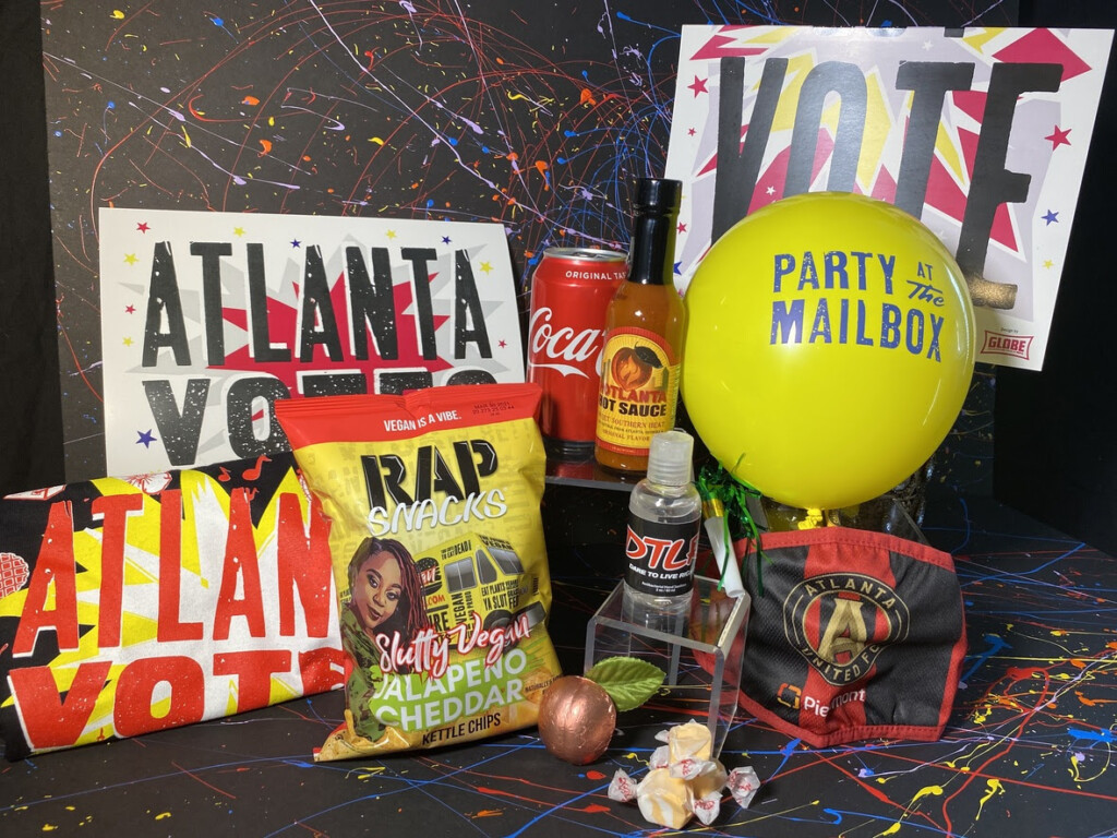 Party at the Mailbox was created with the intent to encourage and excite the community to get out and use their voice to vote! The Party at the Mailbox ATL box will feature custom items celebrating the city of Atlanta such as Slutty Vegan Rap Snacks, Hotlanta Hot Sauce, ATL United Face Masks and many more cool items, at NO cost!