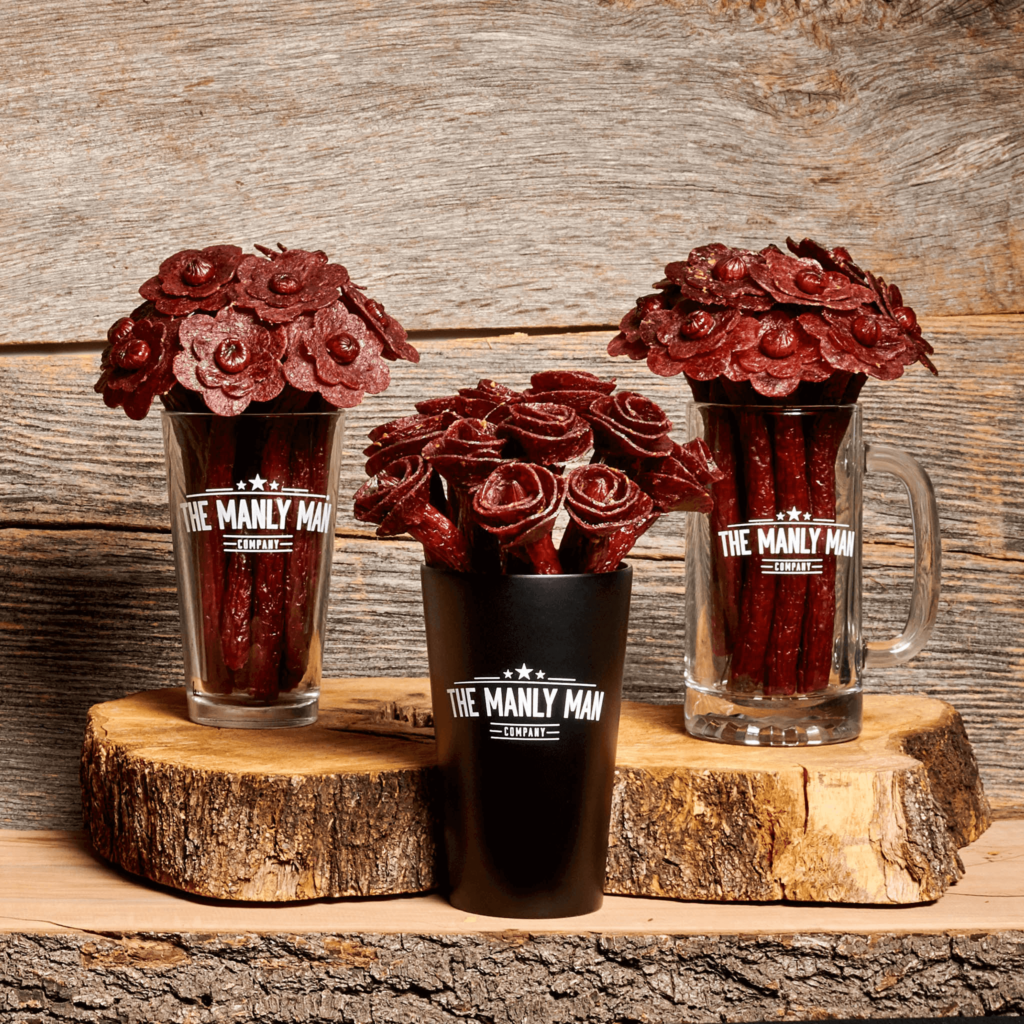 Who else enjoys a tasty and hearty snack? Manly Man Co. has just that with its stunning edible flower bouquet made from quality beef jerky. The wildly popular special edition Beef Jerky Flower Bouquet comes in a stainless steel pint glass with petals made of 100% beef and a stem made from a mouthwatering blend of beef, pork, and spices. Your bouquet comes fully assembled in a custom box available in 4 Flavors: Original, Teriyaki, Hot, Mixed.