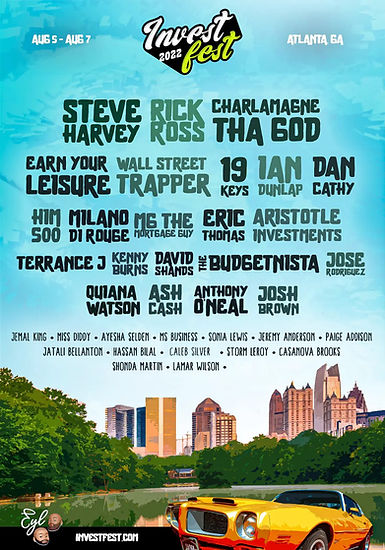 Invest Fest 2022 runs August 5 thru 7 at Georgia World Congress Center in Atlanta, Gerogia, with over 30 special guests coving topics from cryptocurrency to estate planning. It was recently announced that Tyler Perry will be in attendance and other speakers include EYL hosts Rashad Bilal and Troy Millings, Rick Ross, Dame Dash, T.I., Charlamagne Tha God, Terrence J, Kenny Burns, and more.