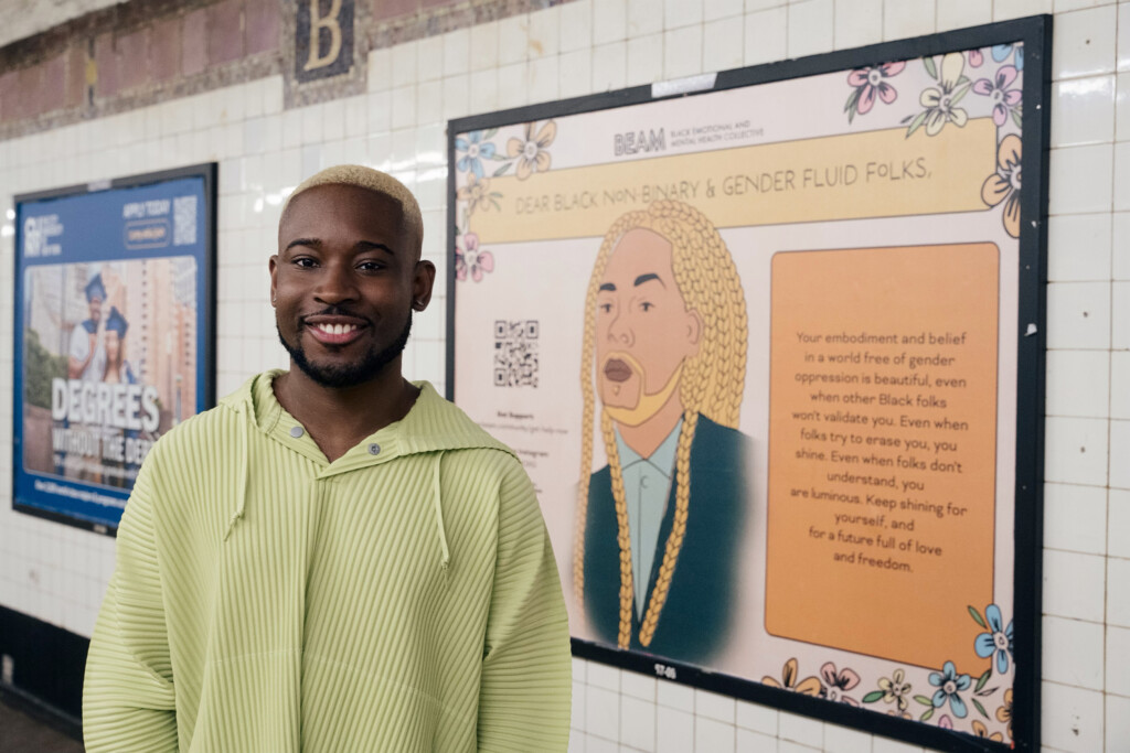 These affirmations can be found on subways in Harlem and Brooklyn, New York. The QR codes featured on each affirmation link to a directory of mental health services, events, wellness tools, and resources to support communities on their healing journeys.
