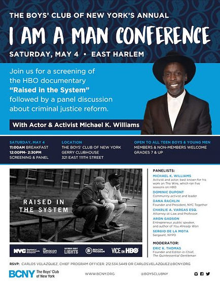 On Saturday, May 4, Actor and Producer Michael K. Williams will speak at the Boys’ Club of New York’s annual “I AM A MAN” series.