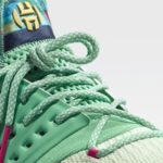 California Dreamin’ is inspired by Harden’s love for Los Angeles, his hometown, and the place where he shaped his game and learned to dream. The sneaker takes on the hues of an LA sunrise, featuring palm tree camo on the lace system, pastel green and purple accents, a chalk coral upper with orange FORGEFIBER threads and dark gray BOOST.