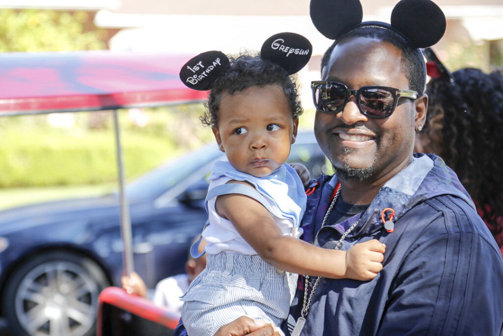 Celebrity Publicist Kita Williams and her hubby-daddy Joe Hardy had the cutest Mickey Mouse birthday-themed party for their son Greysun’s 1st Birthday. All the kids received Mickey Mouse ears or Minnie Mouse ears upon entering the party, got a chance to ride a kid size choo-choo train through the neighborhood and jumped their life away in a Mickey Mouse Clubhouse bouncy jumper. Just a year ago, some of her celebrity clients and friends rubbed her belly at her baby shower and a year later they are singing happy birthday to the little one. R&B artist Johnny Gill who is the God Father, Entertainment Tonight host Nischelle Turner who is the God Mother, TV correspondent Tanika Ray, her business partner Monique Jackson and other friends came out for his party. The yummy Mickey Mouse cake was made by Mo Sweet Treats.
