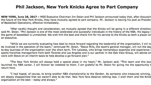 Regrettably, back in April after the Knicks finished another dreadful season, Dolan opted into Jackson’s extension. At 12 million a year Jackson will be getting a grand total 24 million while not making it even into July of the 2017-18 season. Even the rich don’t get fired like the rest of us!