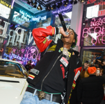After walking in Philipp Plein’s runway show the previous night Christian Combs performs at the popup shop.