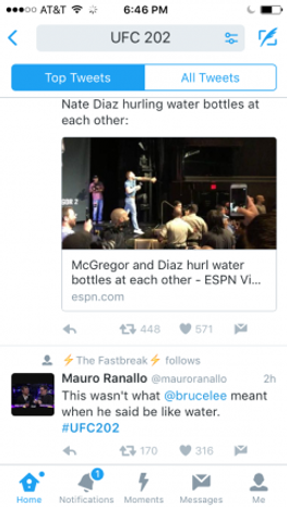 Then, Diaz, along with his team, opted to throw a bottle at McGregor. It was at this point tempers flared—for the worse. Of course, the Twitter world responded: