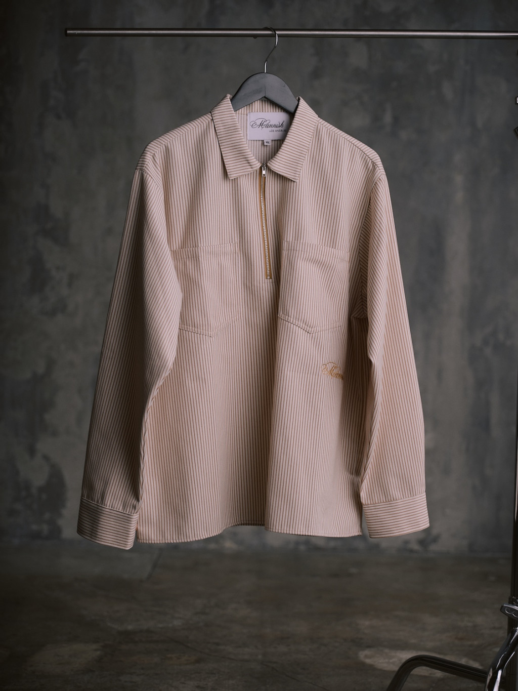 GD: I started late, around 25. Breaking into the industry wasn’t easy for me at the time because they were searching for people who looked like the exact opposite of me. My first photo shoot was for Zumiez, which was a big, full-circle moment because that’s where I shopped growing up. However, when I put on their t-shirts to model, I felt like I could create something a little better than what they were selling. I didn’t have the resources to start a brand immediately, but I had spent most of my life thrifting. I started upcycling pieces I found in Goodwills and thrift stores, learned how to screen print, and began sewing on them. That was the earliest iteration of what MANNISH Boy is today.